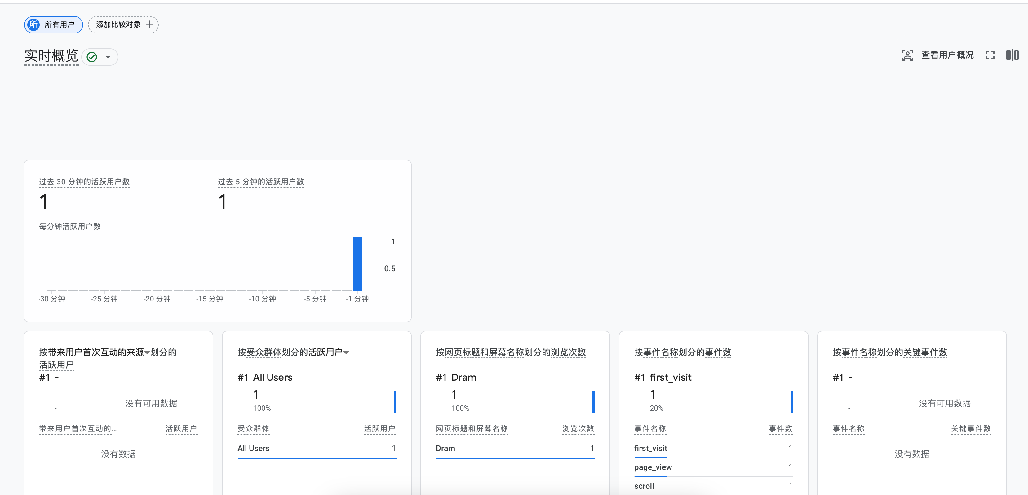 - 实时数据:登录到 Google Analytics 仪表板,导航到“实时数据”部分,查看是否可以看到当前访问你网站的用户数据。